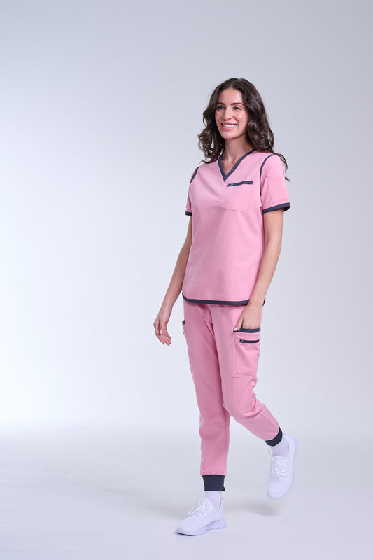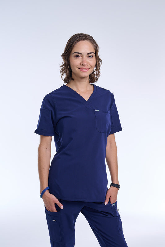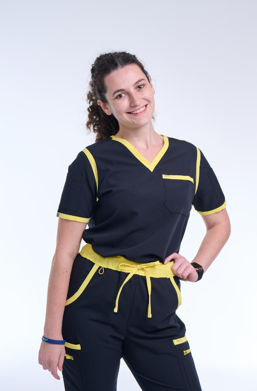 Women's Jet Black / Yellow V-Neck Scrub Top