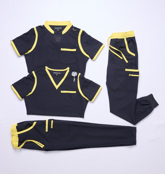 Women's Jet Black / Yellow Jogger Scrub Pants