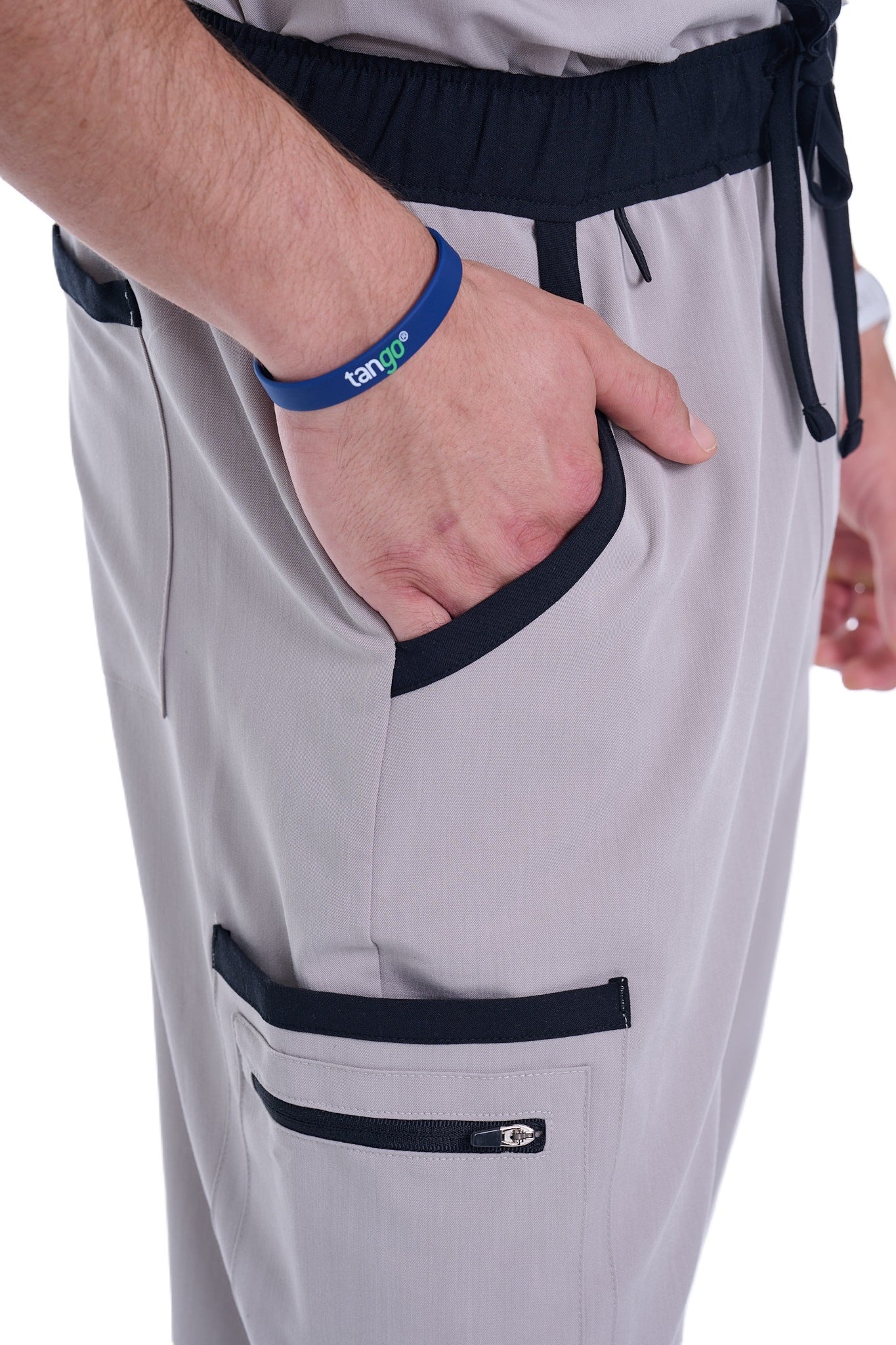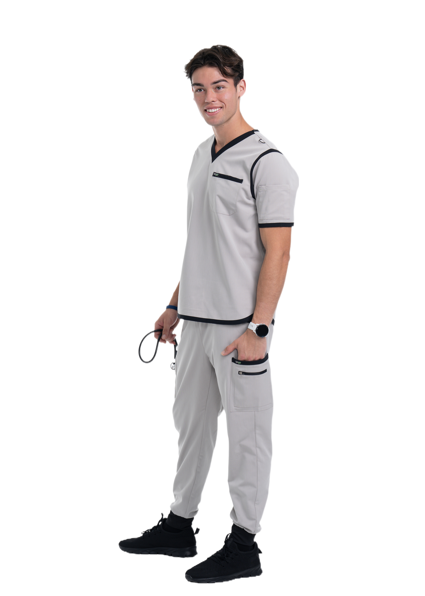 Unite style and functionality with the Jet Black / Olive Men's Scrub Top.