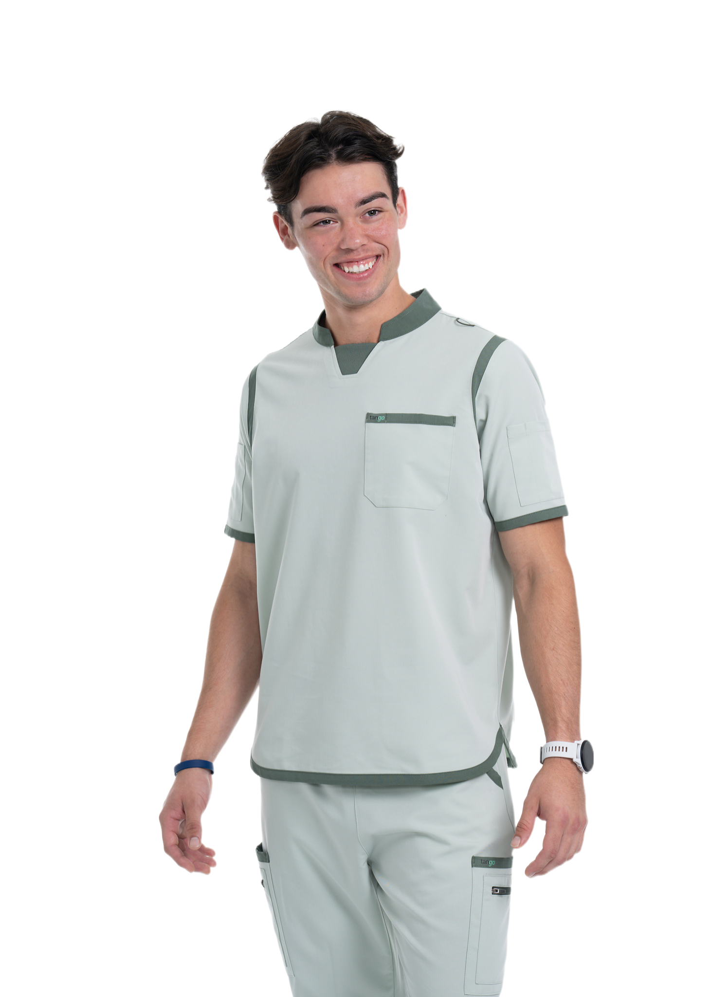 Stay confident and comfortable throughout your workday. Order your Men's Jet Black / Olive Scrub Top today!